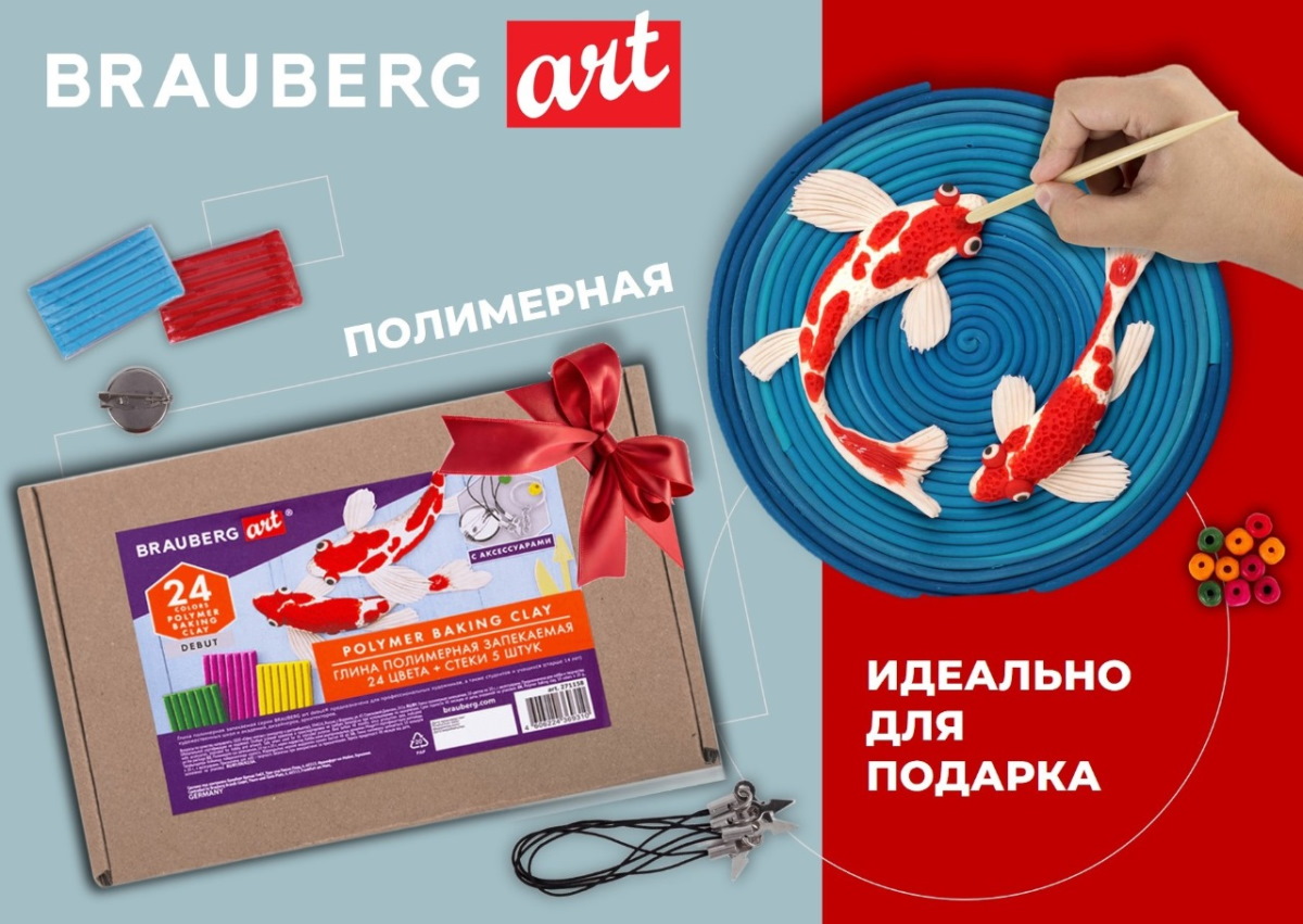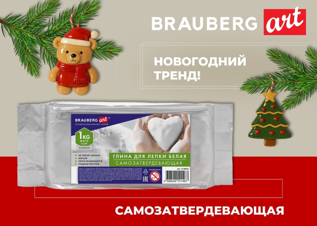 Чтобы не отставать от трендов, мы обновили ассортимент. Самозатвердевающая глина BRAUBERG ART стала мягче, не липнет и не пачкает руки. Она легко разглаживается, не трескается и остаётся прочной после высыхания. Разнообразие фасовок – от 200 г до 2 кг – позволяет подобрать оптимальный вариант для каждого покупателя.