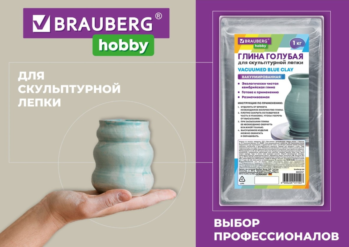 3. Профессиональная глина для скульптурной лепки. От детского творчества – к настоящим профессионалам. В линейке BRAUBERG HOBBY представлена готовая глина для скульптурной лепки (красная и голубая). Востребованный товар среди: