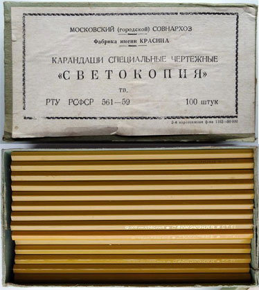 Карандаши упаковывают в картонные коробки по 3, 5, 6, 10, 12, 18, 24, 36, 48. 50 и 100 шт. и обёртывают в пачки из плотной обёрточной бумаги. Маркировка карандашей содержит их наименование, цвет, степень твёрдости и количество.» | |||