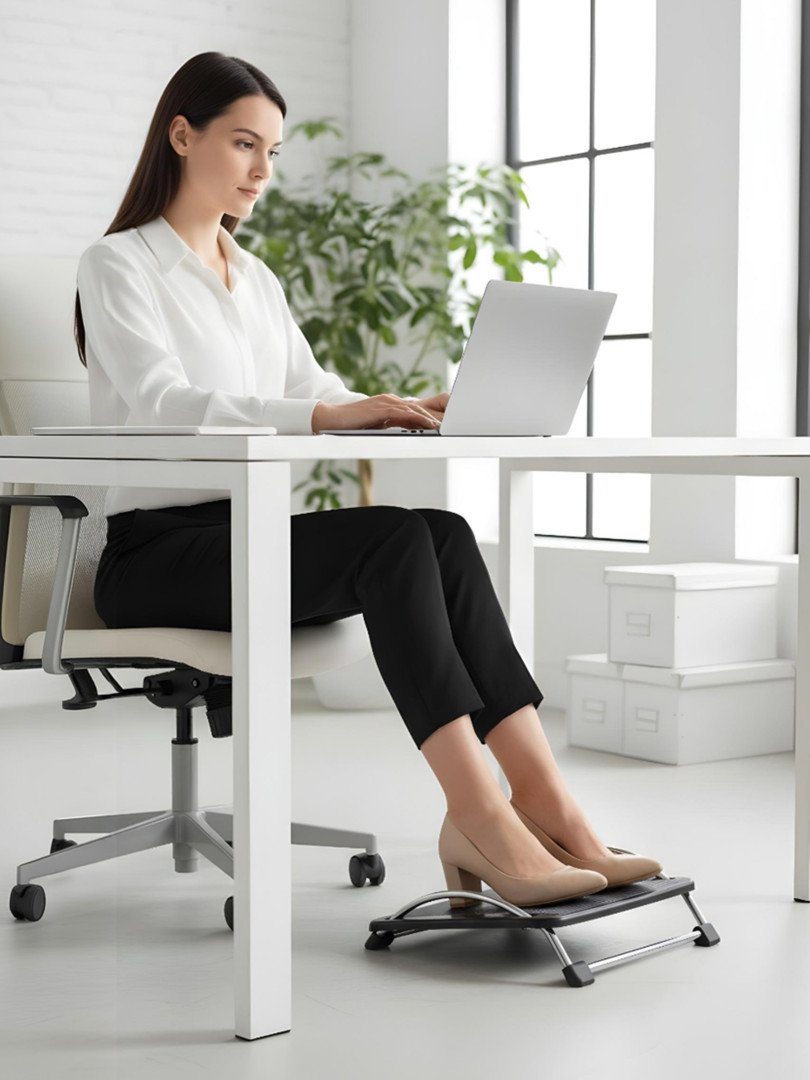Кроме этого, компании сегодня активно следят за здоровьем своих специалистов, а значит, важна эргономика рабочего пространства. Поэтому здесь также предлагаем комплексное решение: кресло с рычагом регулировки качания и наклона, а также подголовником и подлокотниками, которые можно настроить под себя. Для максимального комфорта в ассортименте представлены подставки для ног и монитора, а также коврики для кресла.
