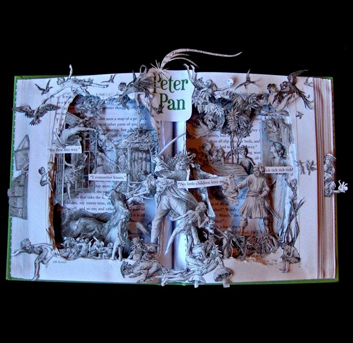 Когда смотришь на объемные картины, выполненные Кэли Берри, складывается впечатление, что все нарисованное просто выскочило со страниц известных книг. В своих иллюстрациях Келли помещает не только главных героев, но и вписывает цитаты, которые характеризуют сущность каждого из них. Отрывки из текста хорошо дополняют 3D визуализацию. В настоящий момент у мастерицы создана целая галерея работ, которая выполнена по ее личной интерпретации книг: «Алиса в стране чудес», «Питер Пен», «Волшебник изумрудного города» и др. | |