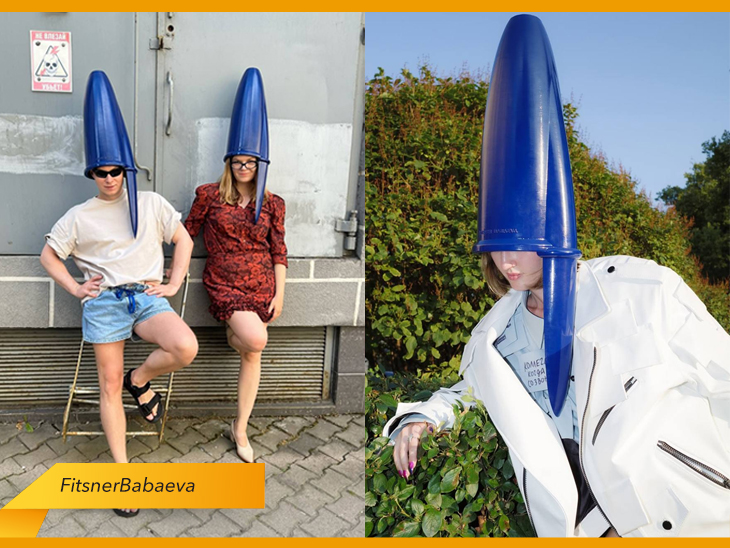 Бренд FitsnerBabaeva, основанный Витей и Дашей в 2024 году, известен своим креативным подходом и хулиганством в дизайне. Неудивительно, что они не смогли пройти мимо культового дизайна BIC©. Был создан смелый арт-объект, который предлагается интегрировать в образ: в виде шляпы.