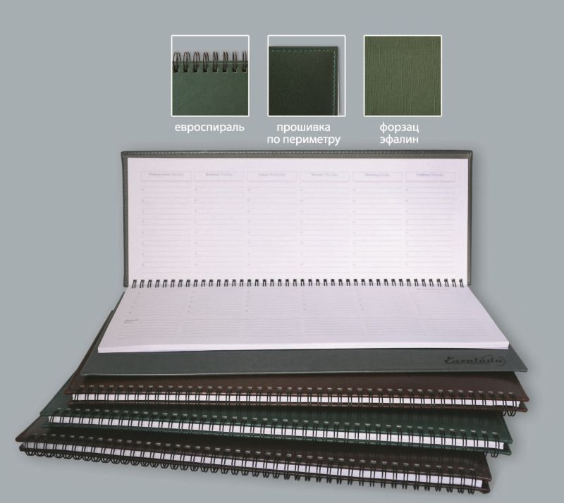 Универсальный размер 390х180 мм позволит вместить весь объем необходимой информации. Планинг выполнен из великолепных элитных переплетных материалов, поэтому он украсит рабочий стол и подчеркнет Ваш высокий статус.