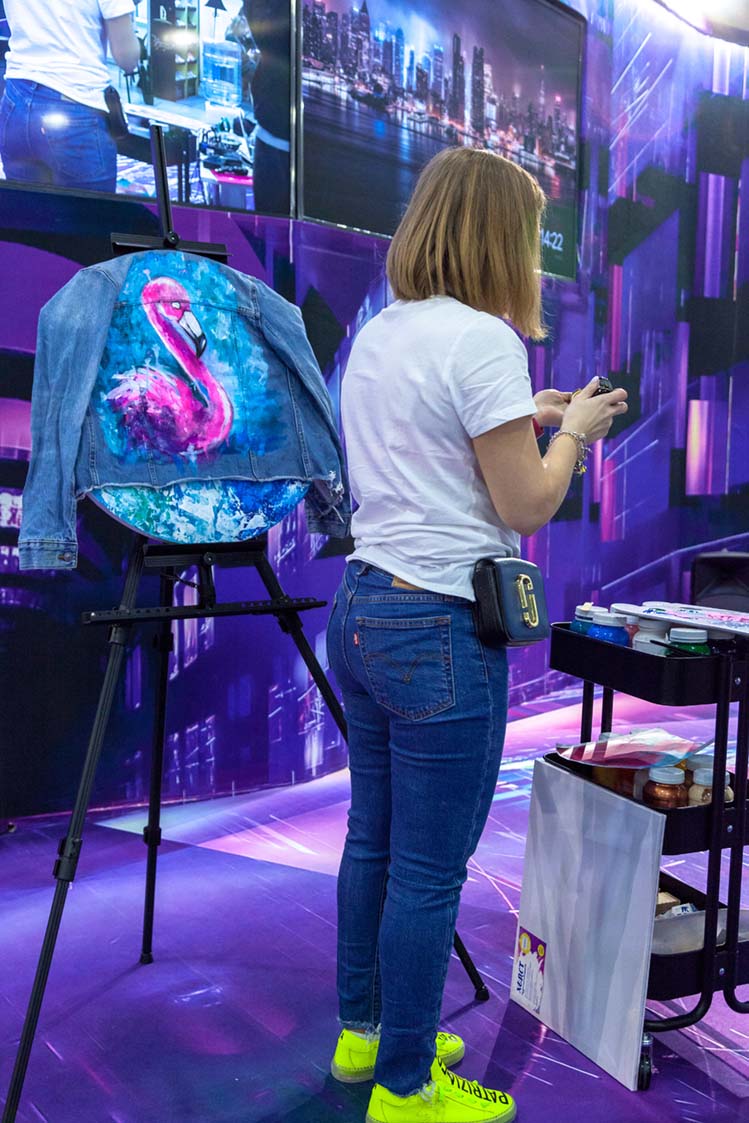 Компания Люксарт презентовала новые акриловые краски, которыми художница декорировала джинсовую куртку и чемодан, наглядно показывая, как за несколько часов из обычной вещи сделать неповторимое хенд мейд произведение.