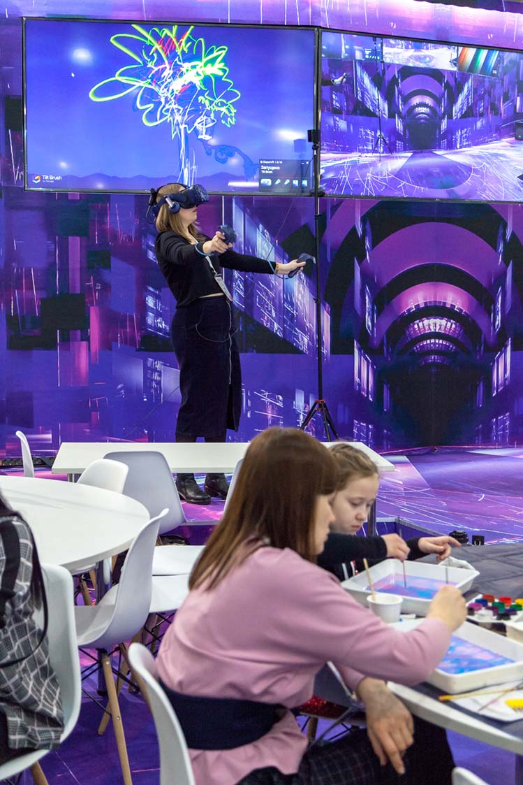 Особенный интерес вызвал мастер-класс от Black VR – во время работы фестиваля у посетителей была уникальная возможность погрузиться в виртуальную реальность и создать 3d рисунок.