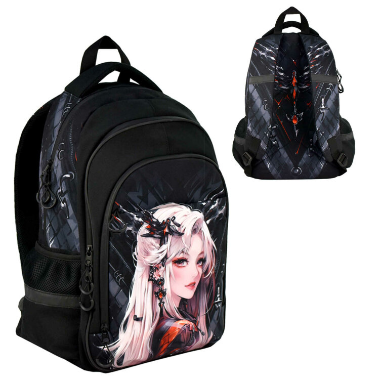 Рюкзак школьный Феникс+ арт.68253/ 14 ДЕВУШКА ПАНК (31х44х16 см, полиэстер, сублимационная печать, 1 отделение (-я), молния, тип спинки: уплотнённая спинка, тип дна: уплотнённое дно, ПЭТ-пакет с ручкой)