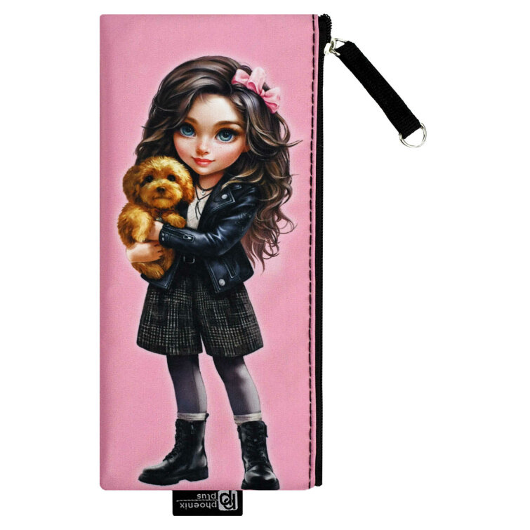 Пенал школьный Феникс+, арт.68433/ 30 БРЮНЕТКА С СОБАЧКОЙ из коллекции ВЕРНЫЕ ДРУЗЬЯ (без наполнения, 19.5х9 см, микрофибра на ПВХ-основе, молния, сублимационная печать, ПЭТ-пакет).