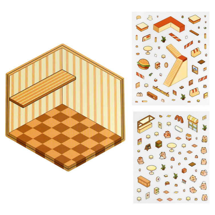 Наклейки-румбокс д/создания миниатюрных сцен, 125х150 мм, арт. 71507 / 300 КАПИБАРА. КАФЕ. (комплектность: наклейки (2 л.), поле для наклеивания (1 л.); размер листа: 125х150 мм; материал наклеек: полипропилен; кол-во наклеек: 60+; цвет: коричневый; декор: полноцветная печать; индивидуальная упаковка: ПЭТ-пакет)