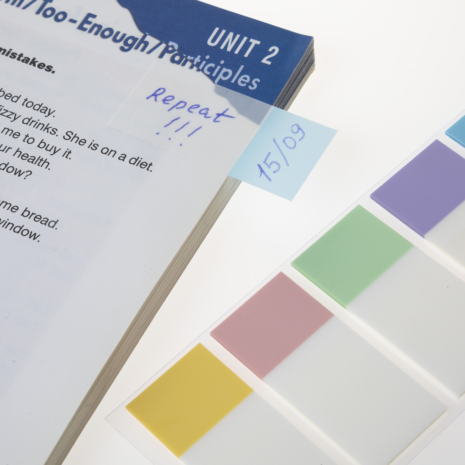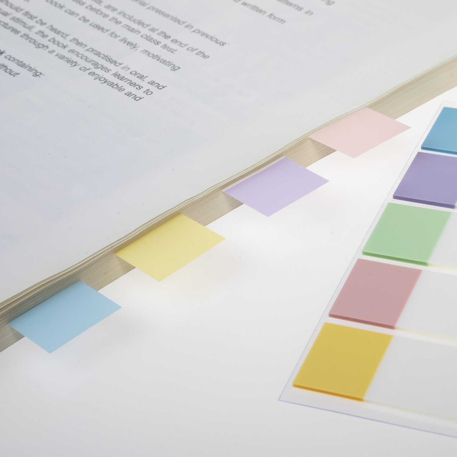 Изготовленные из тончайшего гибкого пластика они легко приклеиваются к странице. Всего в наборе представлено 5 закладок пастельных оттенков, которые могут служить и тематическими разделителями, и закладками для важных мыслей.