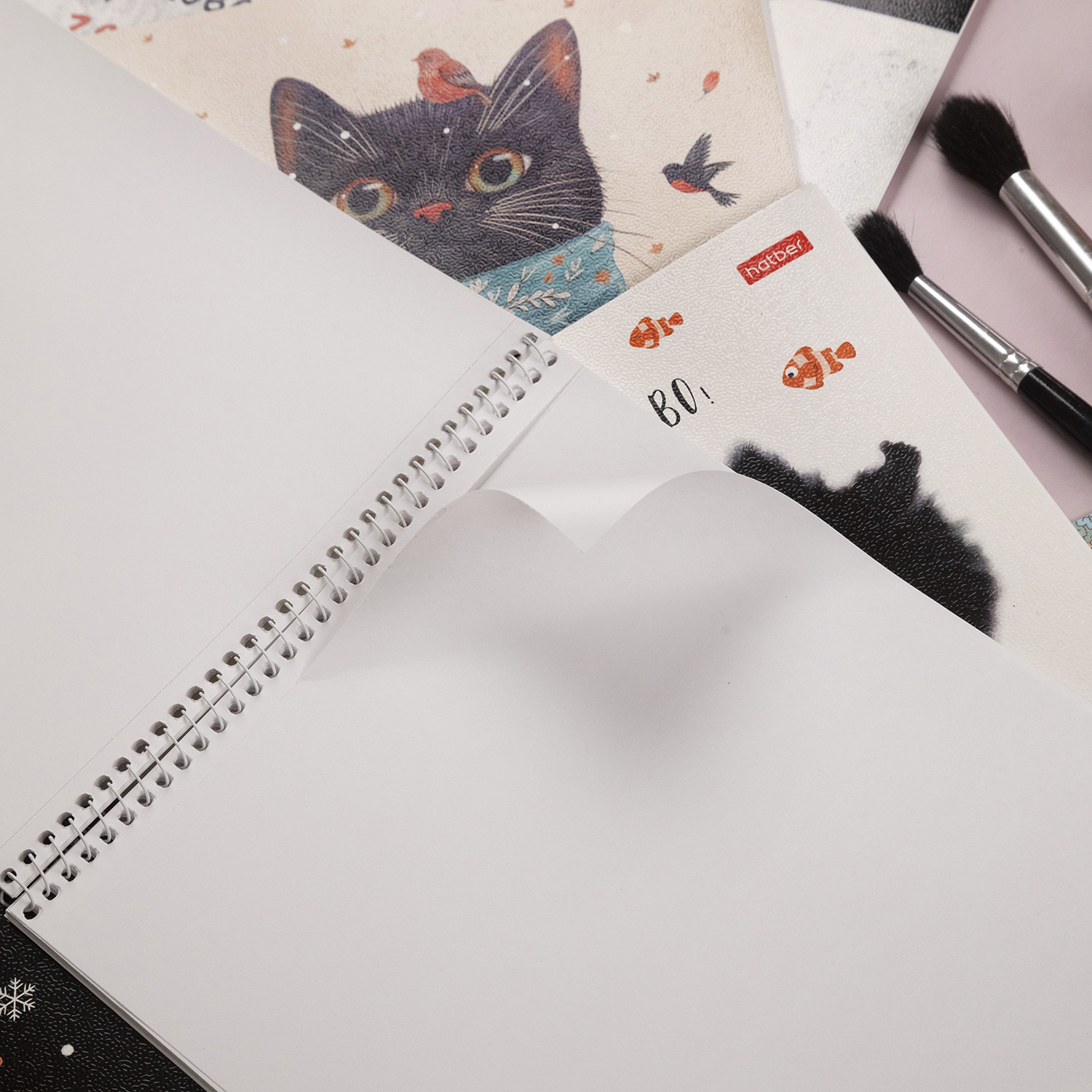 Новые альбомы для рисования «Котэ» с тиснением на спирали от Hatber будто созданы для первых кошачьих портретов. Но и не только, конечно. Рисовать в них можно все, что душе захочется.
