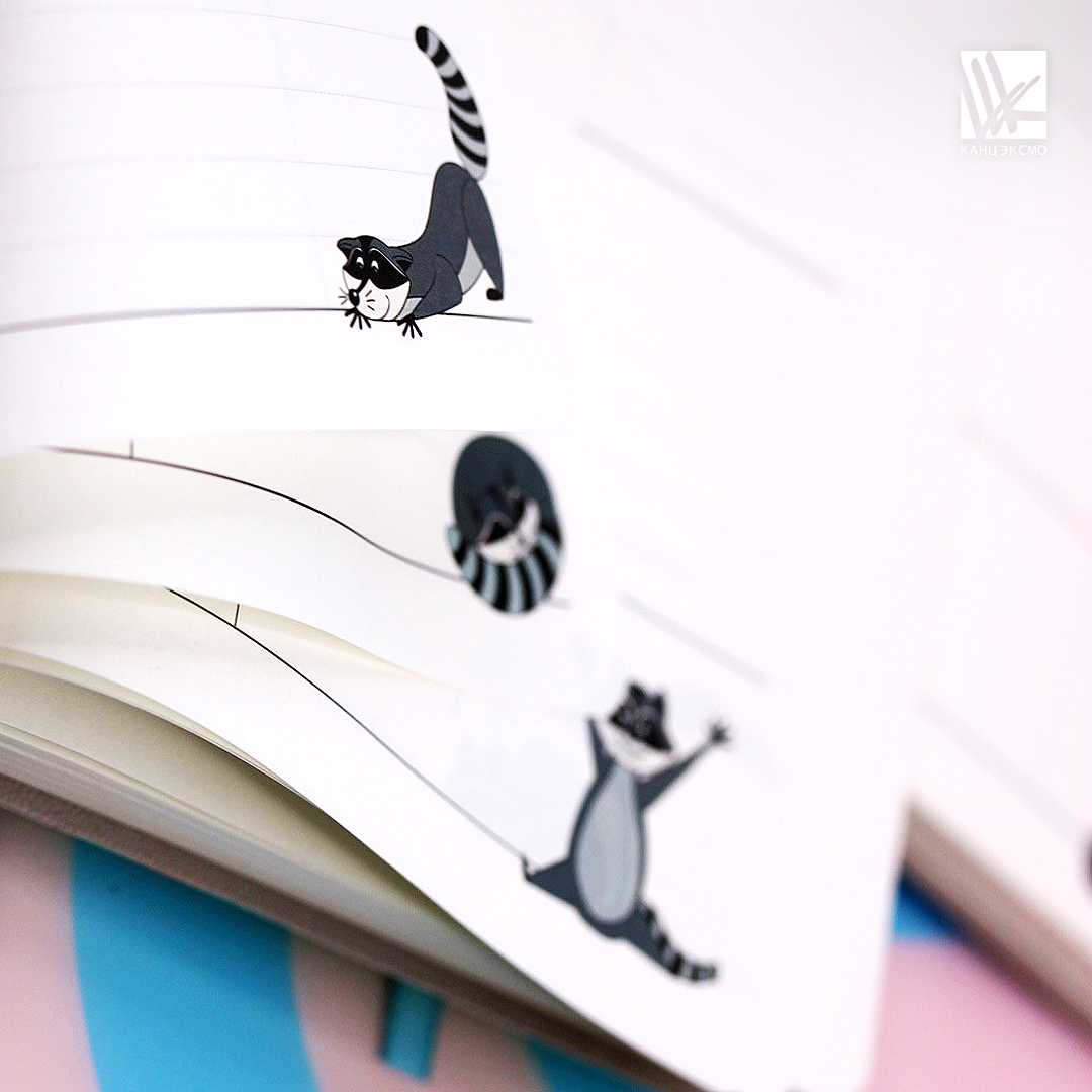 Обаятельные воришки в масках добавят позитива в ваш день. Кстати, они встретятся вам не только на обложке, но и в уголках листов для записей. А если день выдался тяжелый спасут антистресс-раскраски для взрослых. Для удобства мы снабдили этот ежедневник ляссе - теперь нужный лист можно открыть одним движением руки.