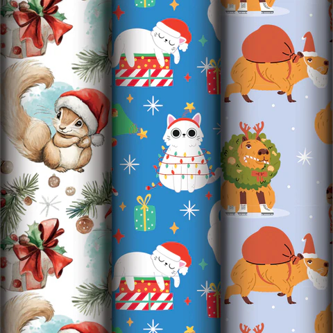 Набор упаковочной бумаги "X-mas animals" ЗОЛОТАЯ СКАЗКА отлично подходит для упаковки подарков, а также для рукоделия, декора и других дизайнерских решений.