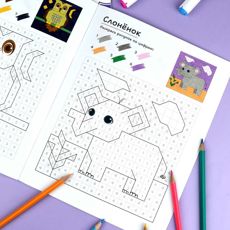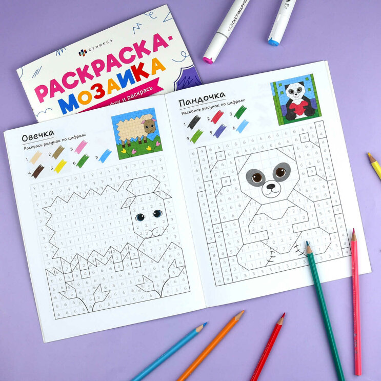 Книжка-раскраска для детей. Серия "Раскраска - мозаика" МИЛЫЕ ЖИВОТНЫЕ
