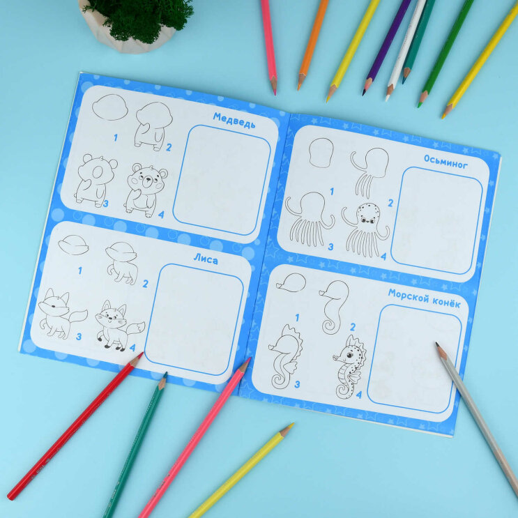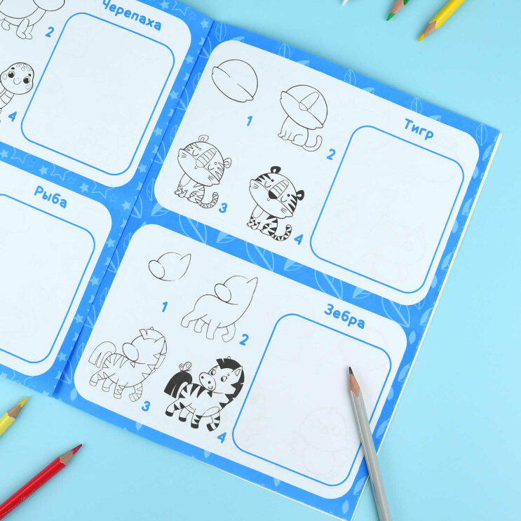 Рисуем животных шаг за шагом! Простая и понятная система из 4 шагов развивает внимание, воображение и уверенность в своих силах.