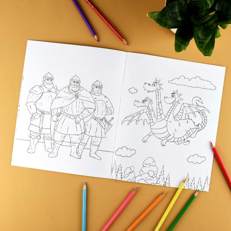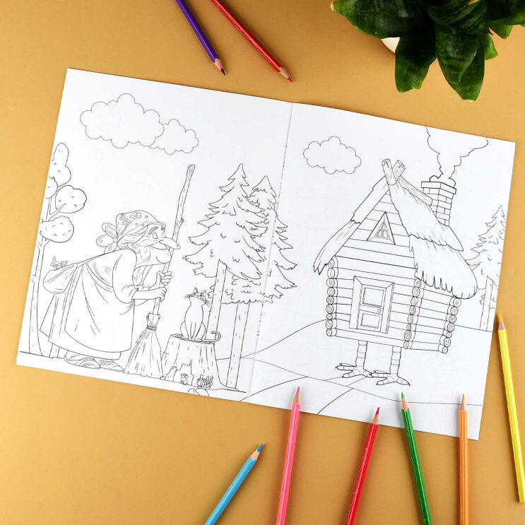 Книжка-раскраска для детей. Серия "Сказочная раскраска" арт. 72034 ЛЮБИМЫЕ ГЕРОИ /215х280 мм, 8 л., блок - офсет 100 г/м², печать в одну краску, обл - мелованный картон 200 г/м², мягкий переплёт (2 скобы)