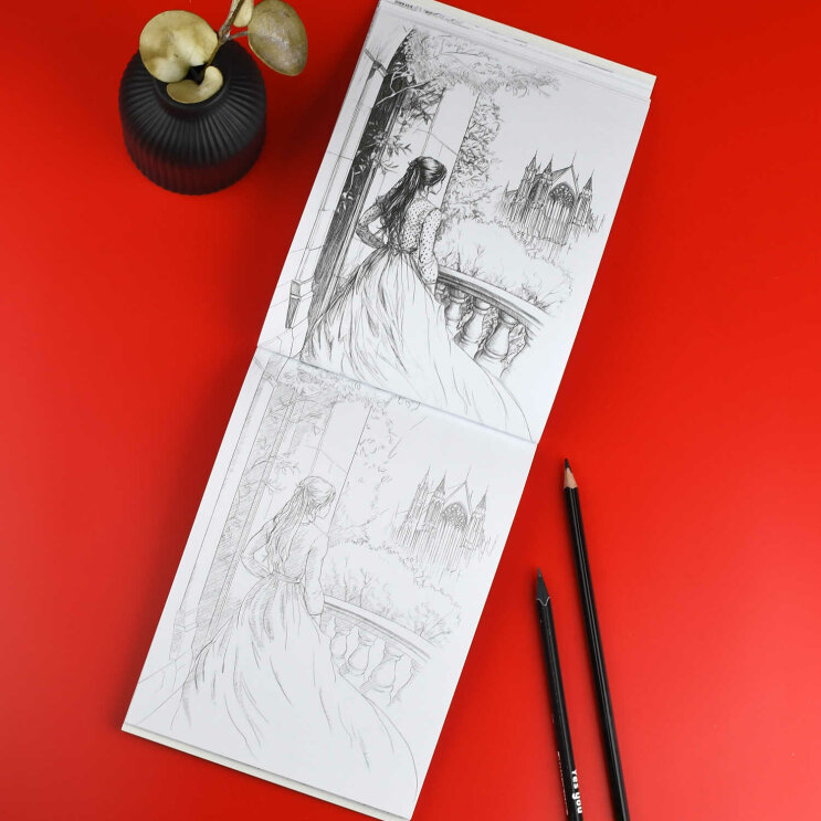 Книжка-раскраска. Серия "Мистика" арт. 71685 ГОТИЧЕСКАЯ СКАЗКА /140x200 мм, 16 л., блок - офсет 160 г/м², печать в одну краску, обл - мелованный картон 200 г/м², клеевое скрепление,