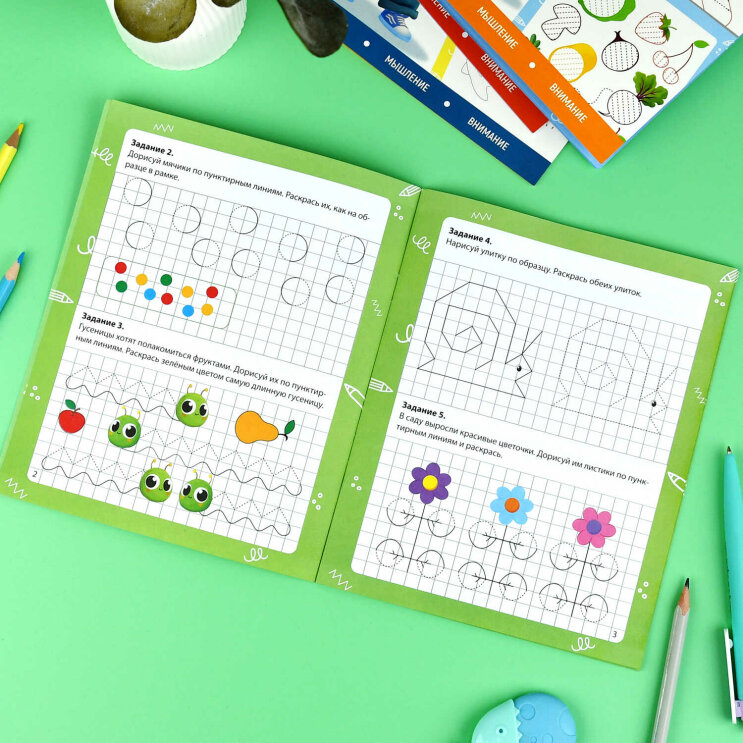 Книжка с заданиями для детей. Серия "Готовим руку к письму" РИСУЕМ ПО КЛЕТКАМ