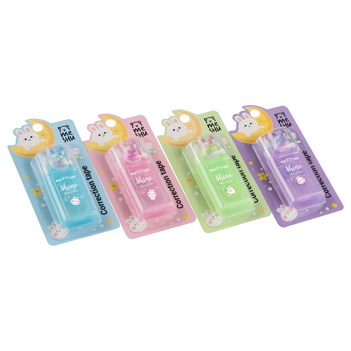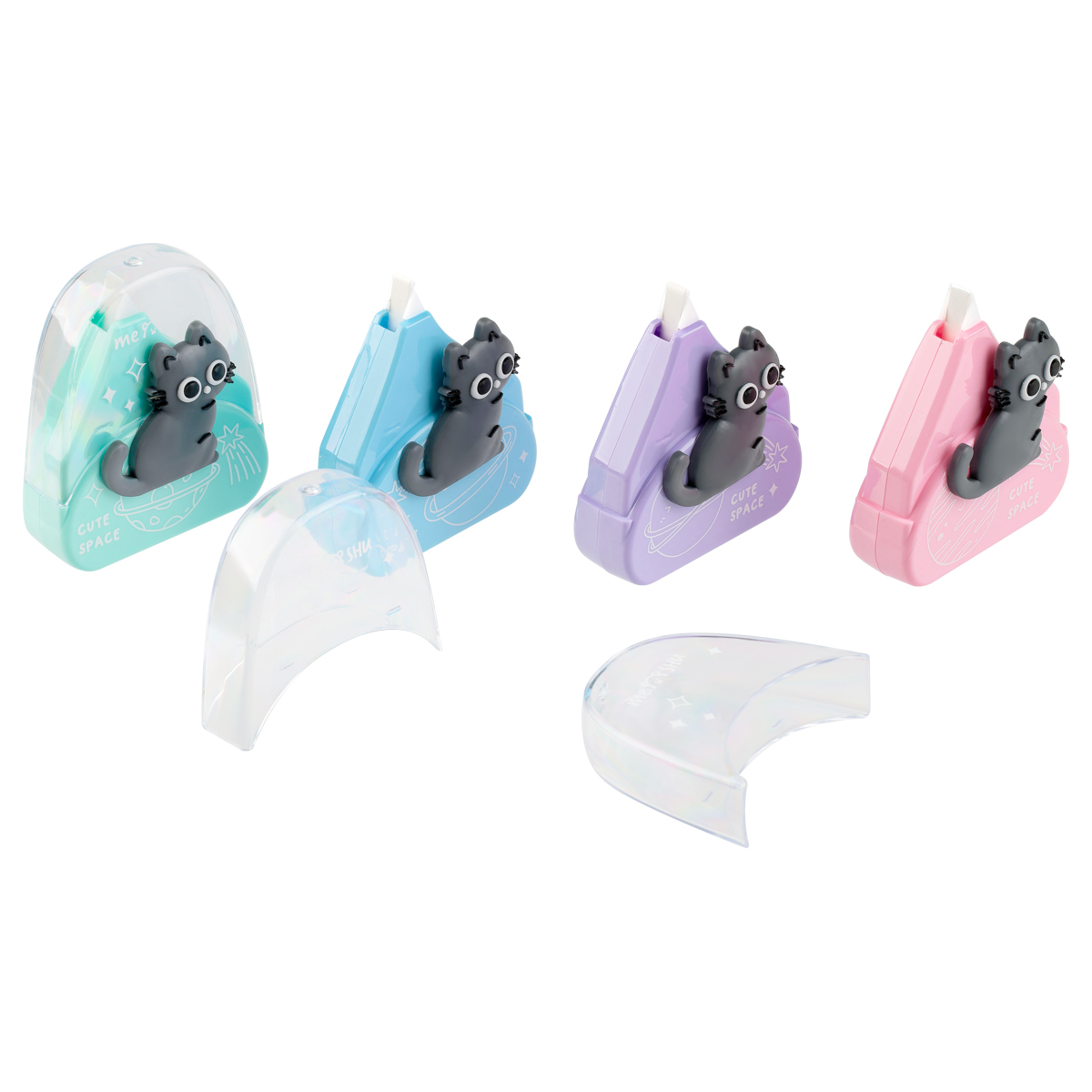 С новыми корректирующими лентами исправлять ошибки — чистое удовольствие. Модель Shiny Bunny имеет компактный диспенсер с красивым защитным колпачком в виде кристального кролика. Корректор Cute Space представлен с печатью на корпусе в виде милых котят.