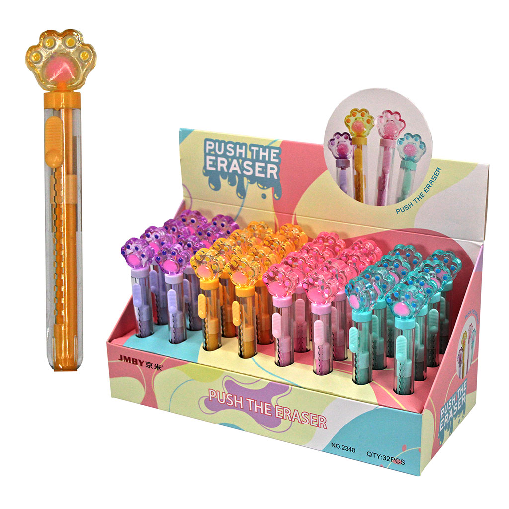 Пластиковый прозрачный корпус комфортно располагается в руке, защищает ластик от повреждений и загрязнений, обеспечивая долговечность использования. Подача ластика осуществляется с помощью выдвижного механизма. Цвет декоративных элементов корпуса соответствует цвету ластика. Цветовое оформление в ассортименте. Упаковка - фирменный картонный стенд.