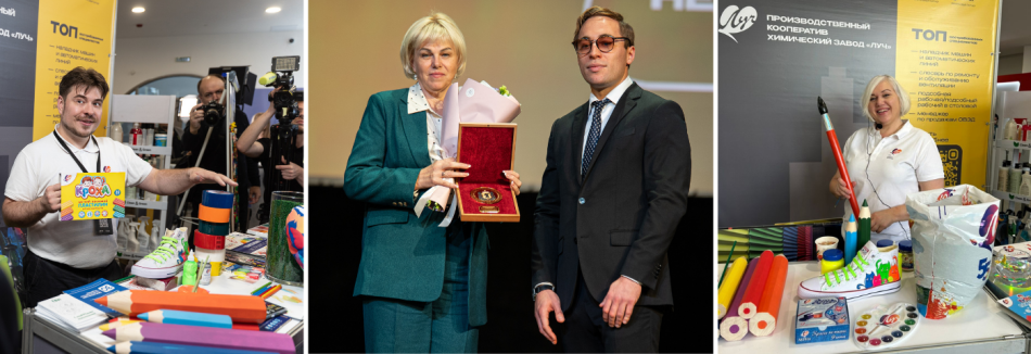 Компания «Луч» стала активным участником деловой программы форума: наш стенд был одним из самых ярких. Сотрудники завода в интерактивном формате рассказывали гостям о производстве, профессиях на предприятии, продукции для творчества.