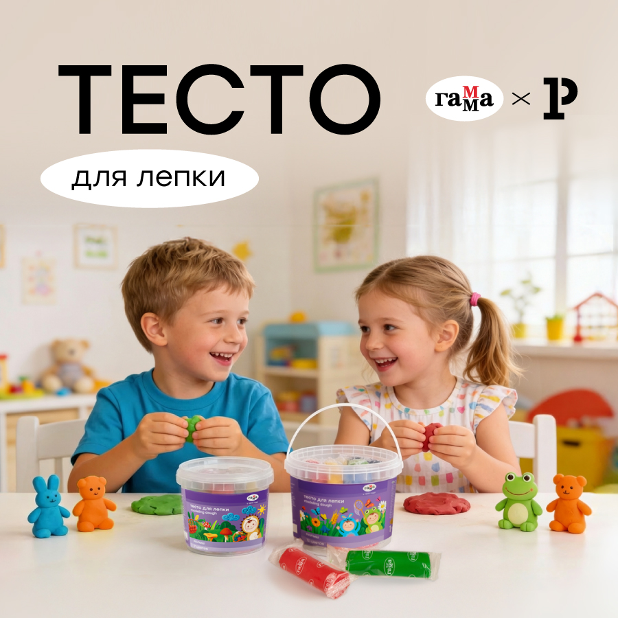 Тесто на основе натуральных компонентов сертифицировано для детей от 1 года, поэтому подойдёт для самых маленьких. Оно идеально для первых творческих работ: развивает мелкую моторику, усидчивость, координацию движений, пространственное и творческое мышление. Мягкая текстура легко разминается, а поделки хорошо держат форму. Масса безопасна и нетоксична, не пачкает руки. Брусочки по 15 и 30 граммов представлены в индивидуальной упаковке, что упрощает длительное хранение теста.