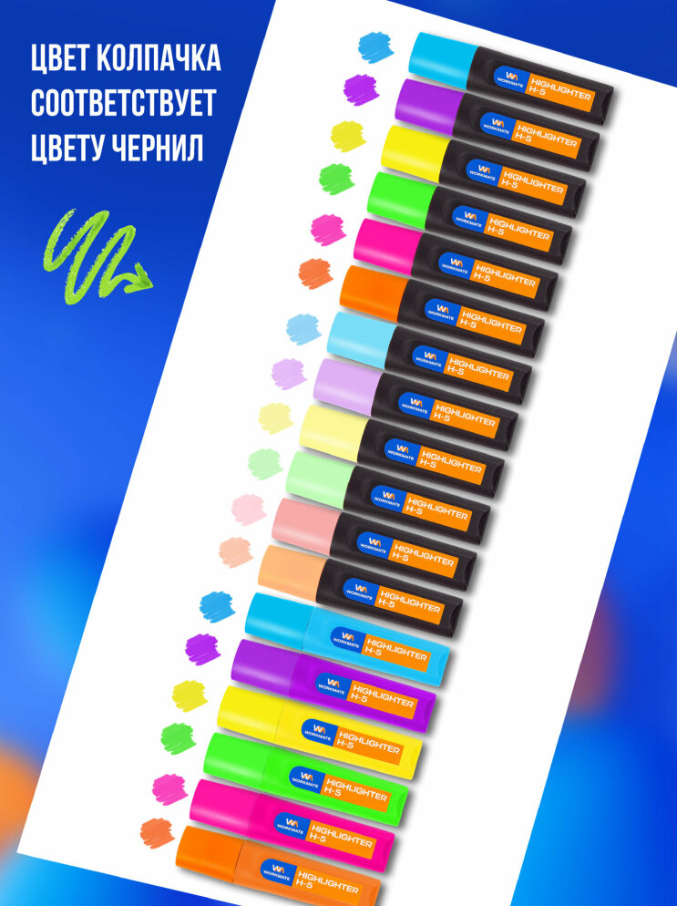 Артикул 15-6723– 18 цветов (неон в черном корпусе и неон в цветном корпусе: желтый, зеленый, розовый, оранжевый, голубой, фиолетовый + пастельные: желтый, зеленый, розовый, оранжевый, голубой, фиолетовый)