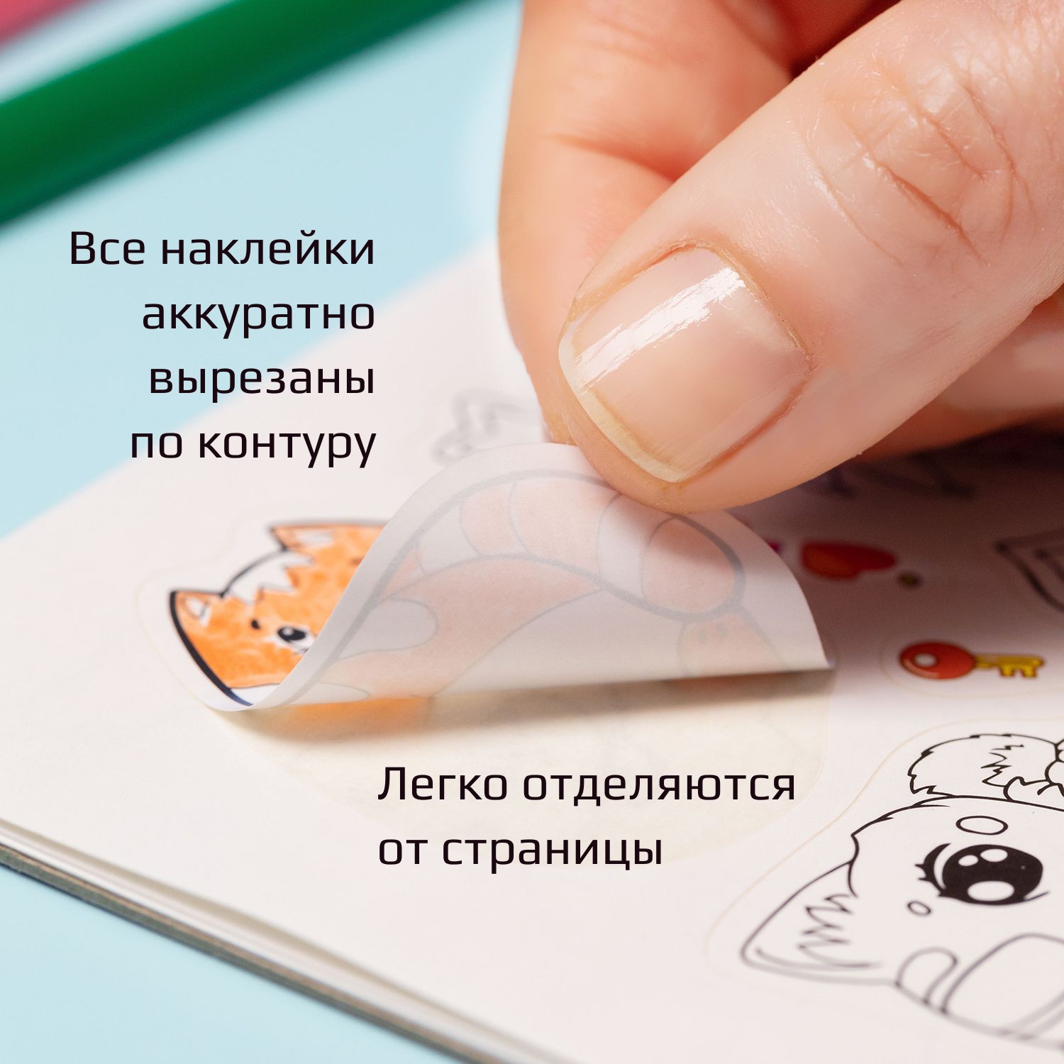 Все наклейки аккуратно вырезаны по контуру, что обеспечивает удобство использования и позволяет легко отделять их от страницы.