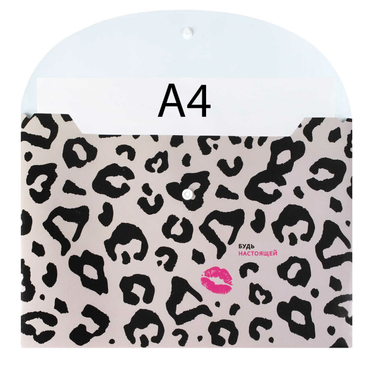Папка для школьных тетрадей пластиковая Феникс+, арт. 72228/ 12 ЛЕОПАРД (полипропилен, формат А4, 33.5х23 см, 1 отделение (-я), кнопка, УФ-печать)