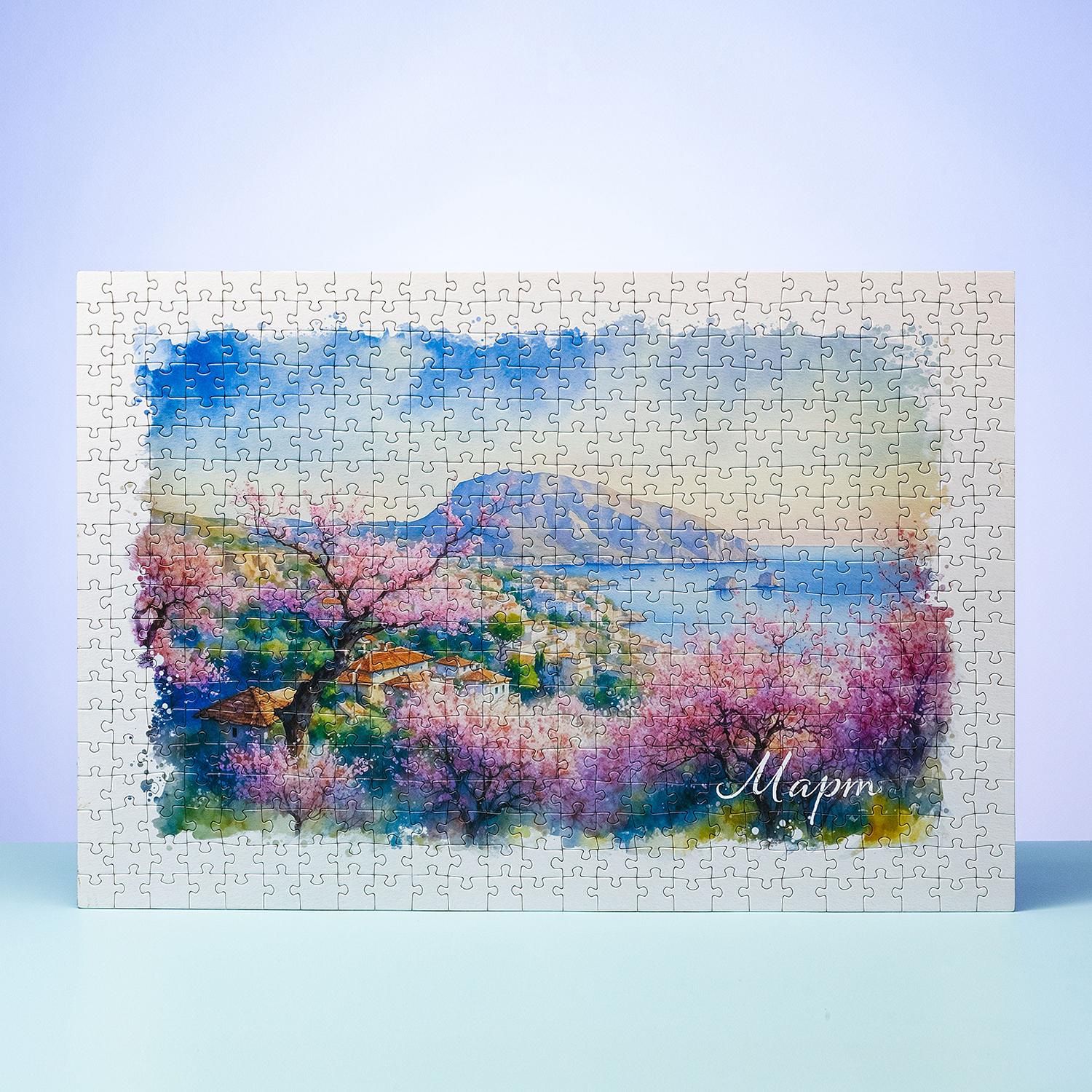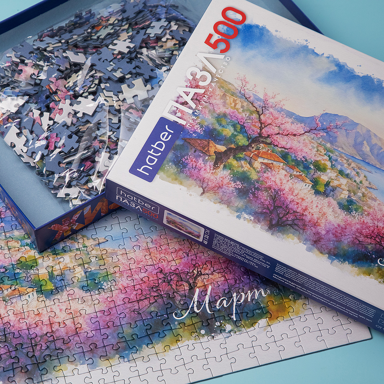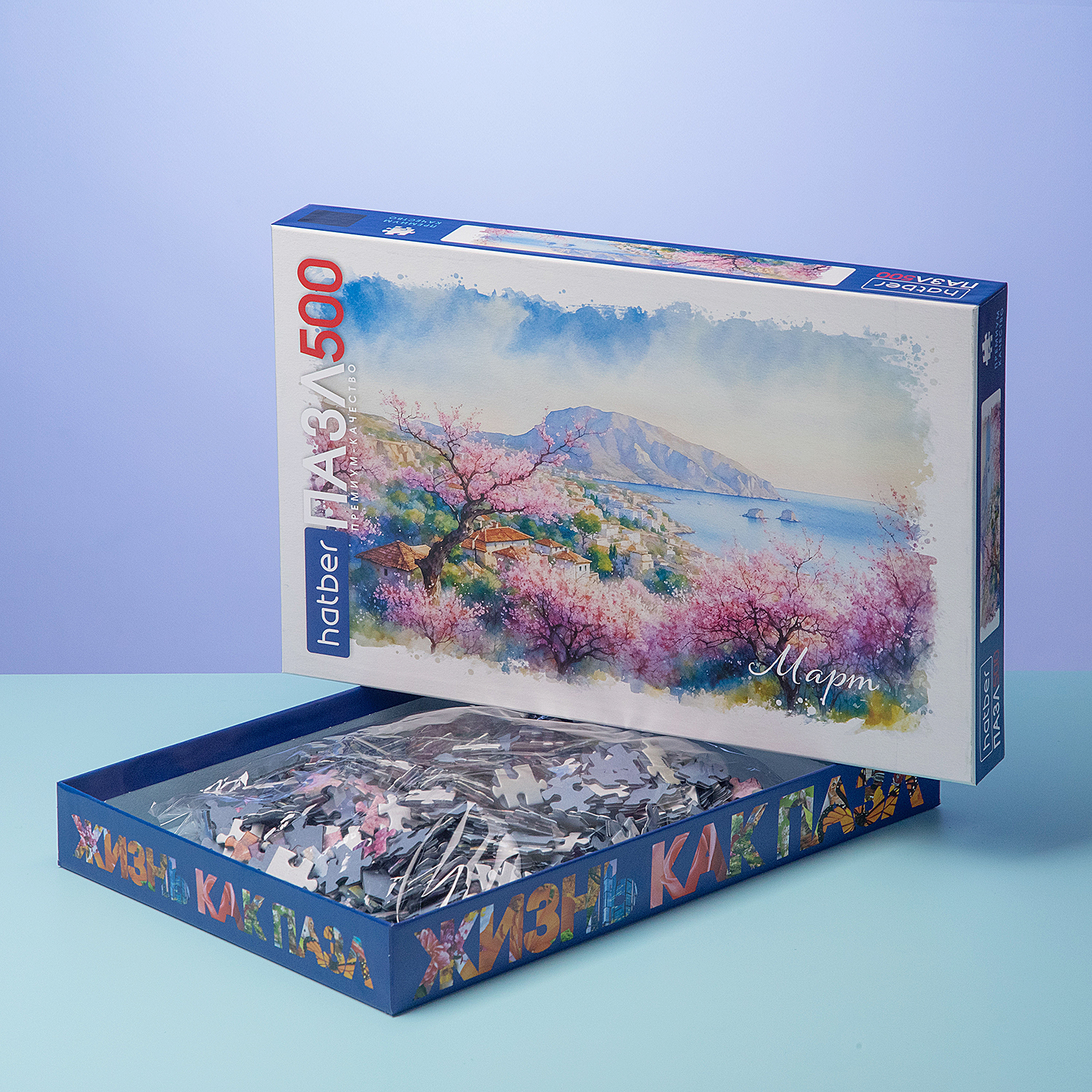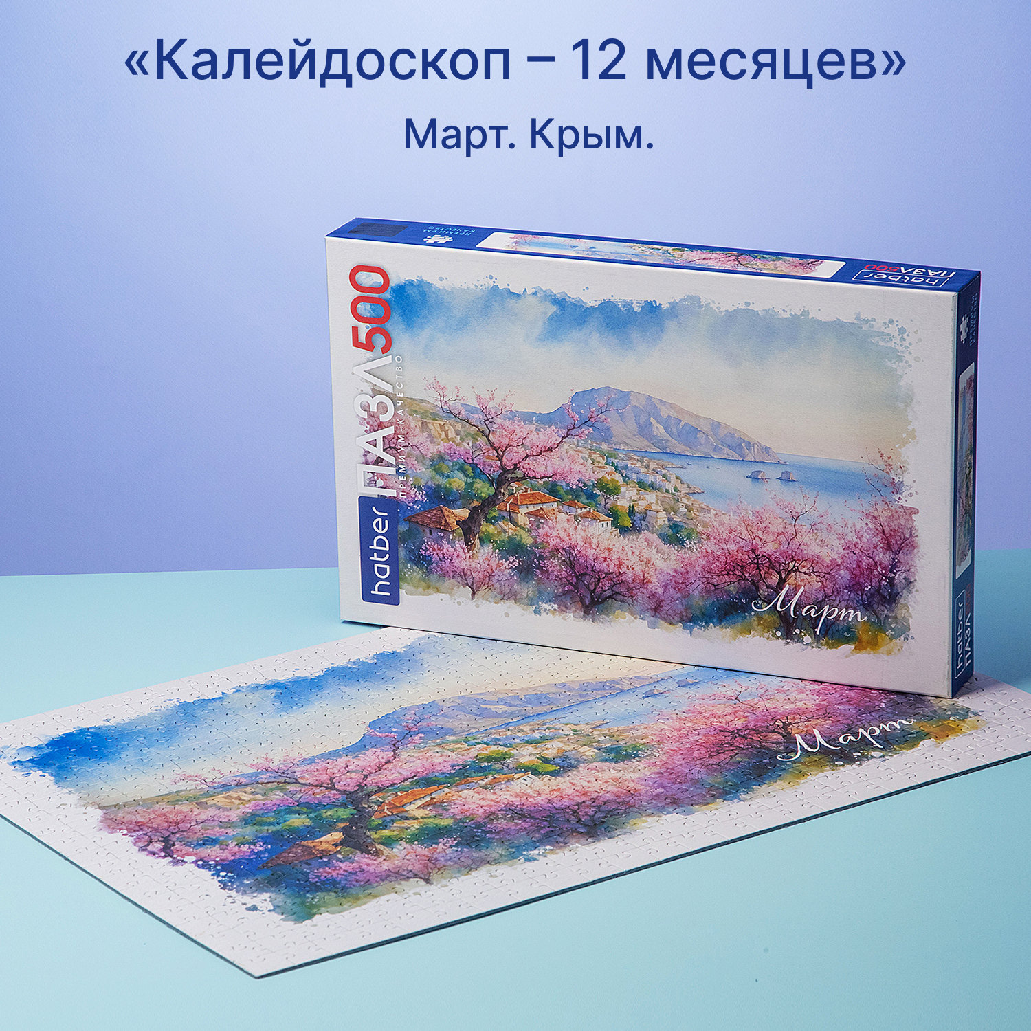 Мартовский пазл из коллекции Hatber «Калейдоскоп – 12 месяцев» переносит зрителя на крымский берег — в тот самый момент, когда ещё не жарко, но уже пахнет весной. 500 деталей складываются в узнаваемый южный пейзаж и продолжают коллекционную историю серии, дополняя зимние месяцы первым по‑настоящему тёплым сюжетом.