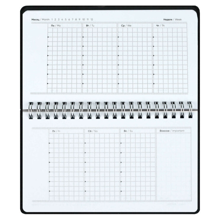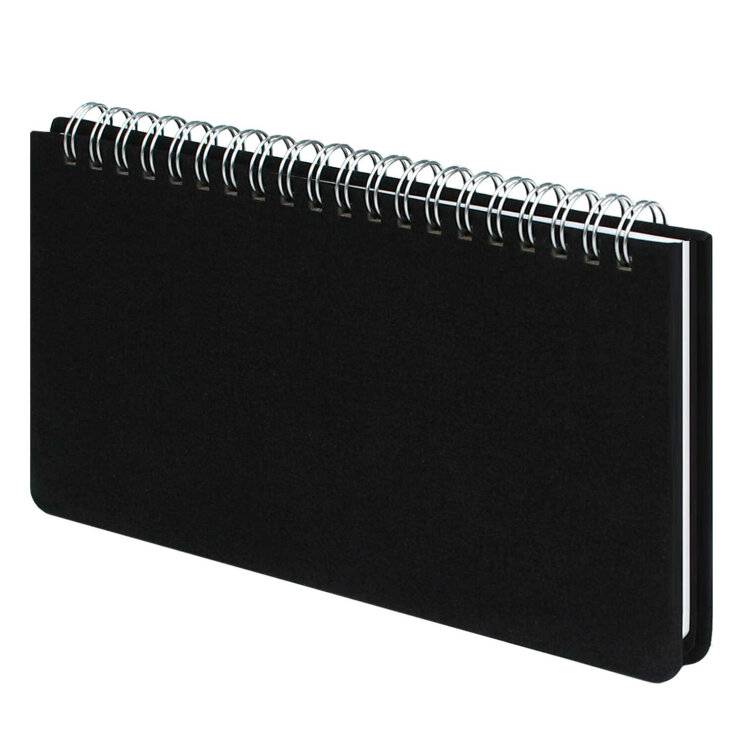Планинг недатированный ESCALADA, 190х110 мм, 68 л., арт. 70754/ 20 БЬЯНЧИНИ ЧЁРНЫЙ (кожзам: твёрдый переплёт, материал обложки: искусственная кожа "Бьянчини"; способ крепления блока: евроспираль открытая; вн. блок: 68 л., белый офсет 70 г/м², печать в одну краску (линия), справочный материал: нет; перфорация углов блока: нет; форзац: печать пантоном, персонализация возможна: да; индивидуальная упаковка: промостикер + ПЭТ-пакет)