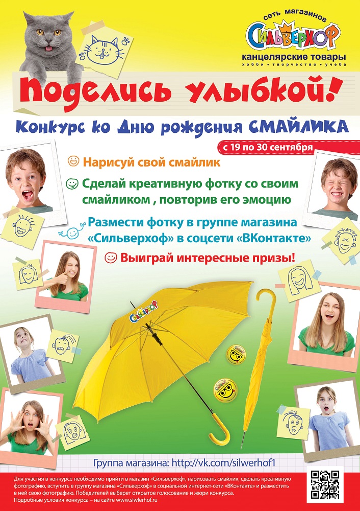 19 сентября, в День рождения смайлика, в сети магазинов "Сильверхоф" стартовал конкурс "Поделись улыбкой!".