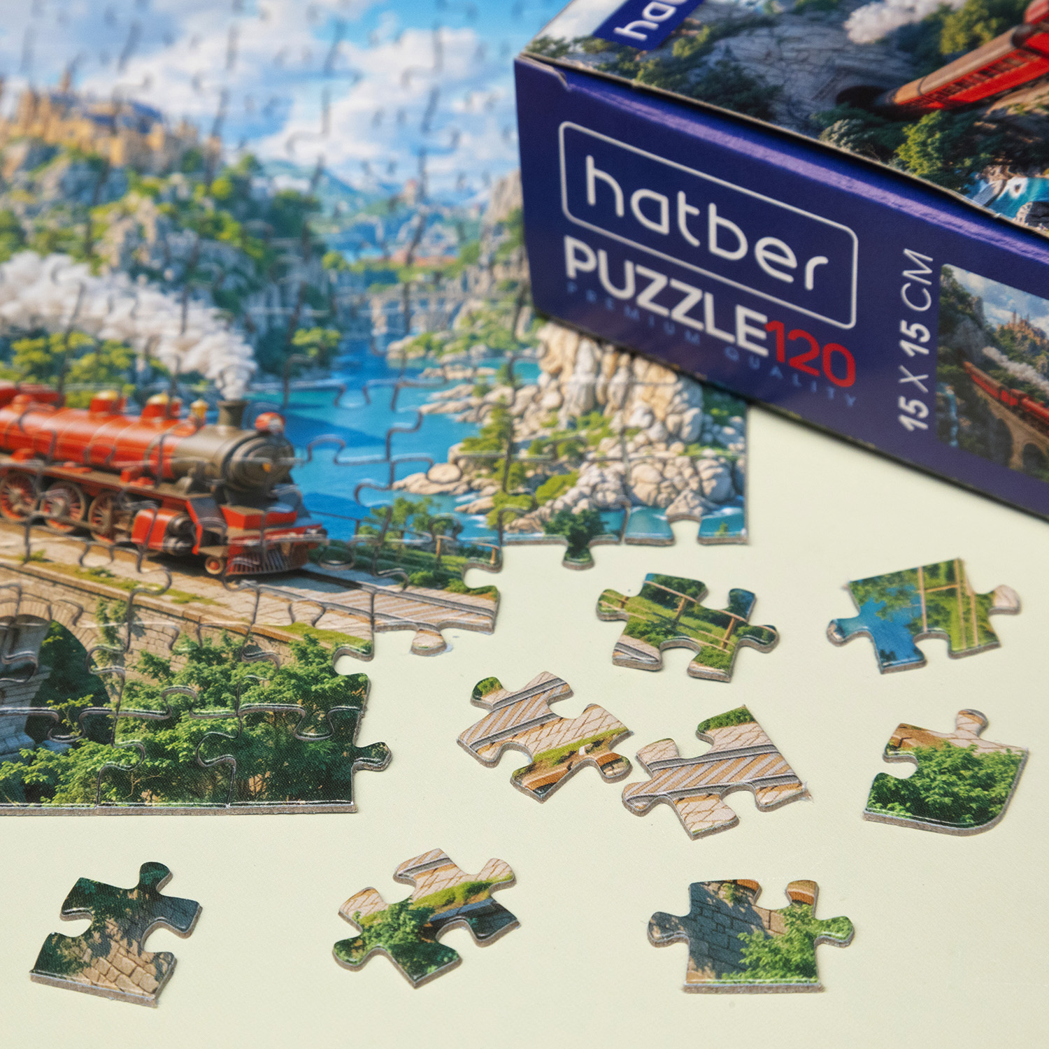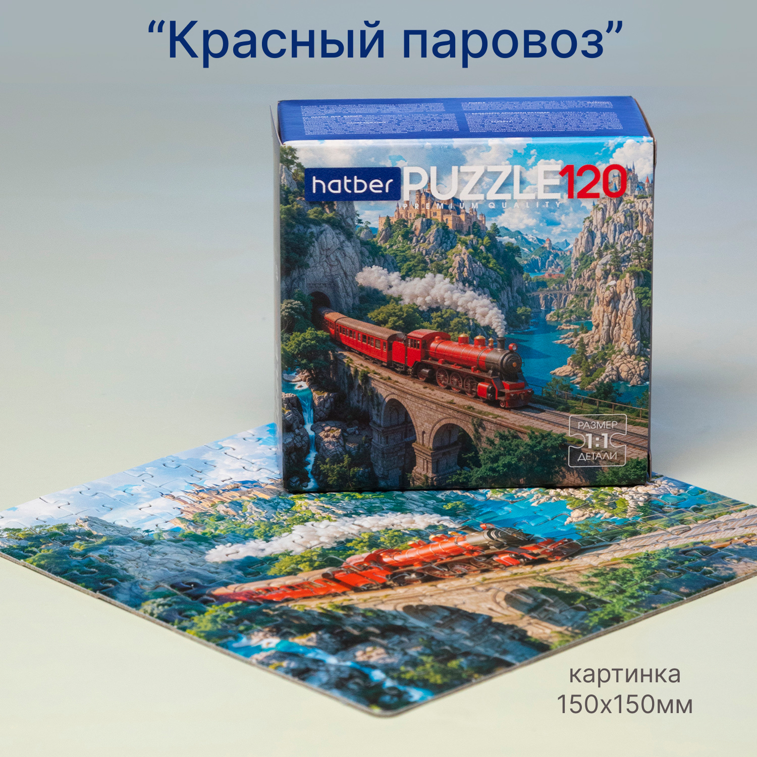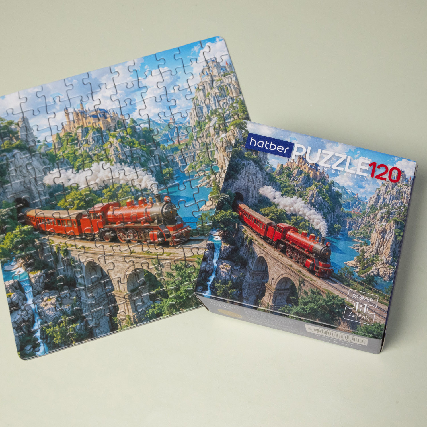 По красочному горному маршруту мчится ярко‑красный экспресс, оставляя за собой ощущение настоящего приключения. Это новый пазл Hatber «Красный паровоз» на 120 деталей с эффектным видом поезда на каменном виадуке. Картина сочетает в себе скалы, мост, изумрудные реки и сказочный замок вдалеке, поэтому каждый собранный фрагмент добавляет в кадр либо кусочек архитектуры, либо участок впечатляющего пейзажа.