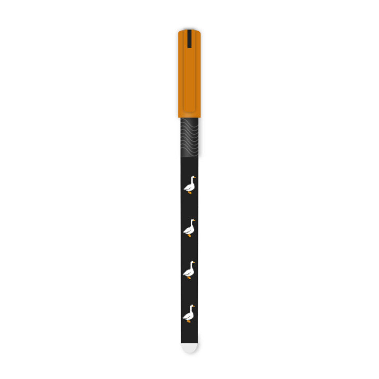 Ручка гелевая ПИШИ-СТИРАЙ арт. 71653 / 30 ГУСИ (ПВХ тубус, 30 шт., неавтоматическая, 7x152 мм, цвет корпуса: чёрный, оранжевый, материал корпуса: АБС-пластик с добавлением САН-пластика, покрытие корпуса: софт-тач, стираемые чернила, 0,5 мм, цвет чернил: синий, стержень: сменный).