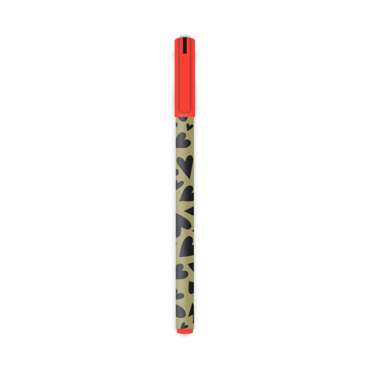 Ручка шариковая арт. 71664 / 30 СЕРДЦА (ПВХ тубус, 30 шт., неавтоматическая, 7x150 мм, цвет корпуса: хаки, оранжевый, чёрный, материал корпуса: АБС-пластик с добавлением САН-пластика, покрытие корпуса: софт-тач, 0,5 мм, цвет чернил: синий, стержень: сменный).