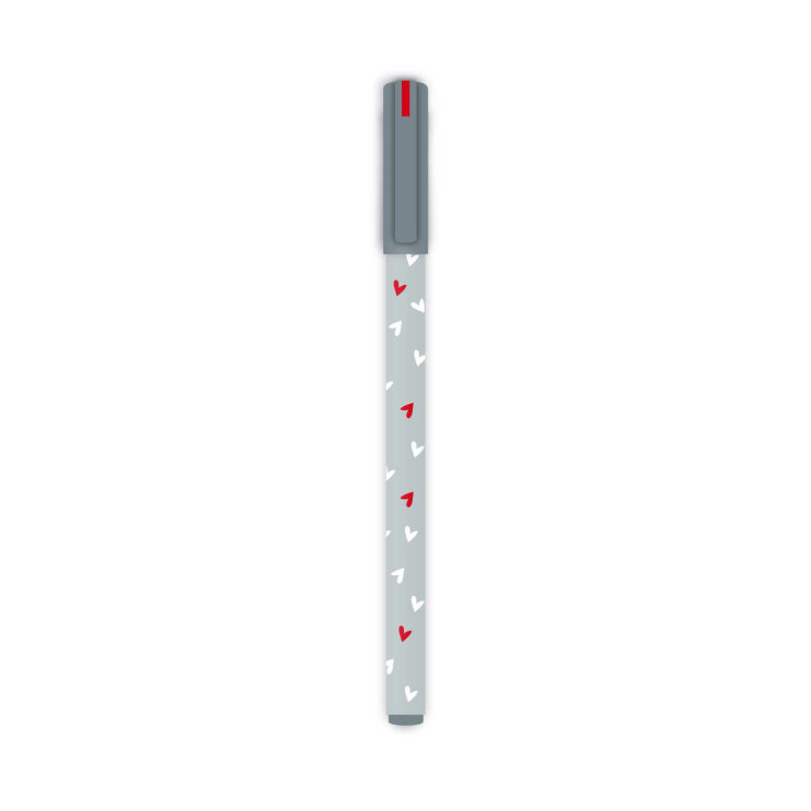 Ручка шариковая арт. 71670 / 30 СЕРДЕЧКИ НА СЕРОМ (ПВХ тубус, 30 шт., неавтоматическая, 7х150 мм, цвет корпуса: светло-серый, красный, материал корпуса: АБС-пластик с добавлением САН-пластика, покрытие корпуса: софт-тач, 0,5 мм, цвет чернил: синий, стержень: сменный).