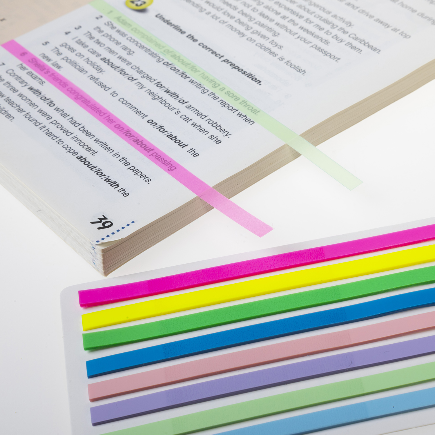 Тонкие полоски яркого, прозрачного пластика легко приклеить поверх нужной строчки, а хвостик закладки будет выглядывать из учебника, книги или тетради элегантным язычком.