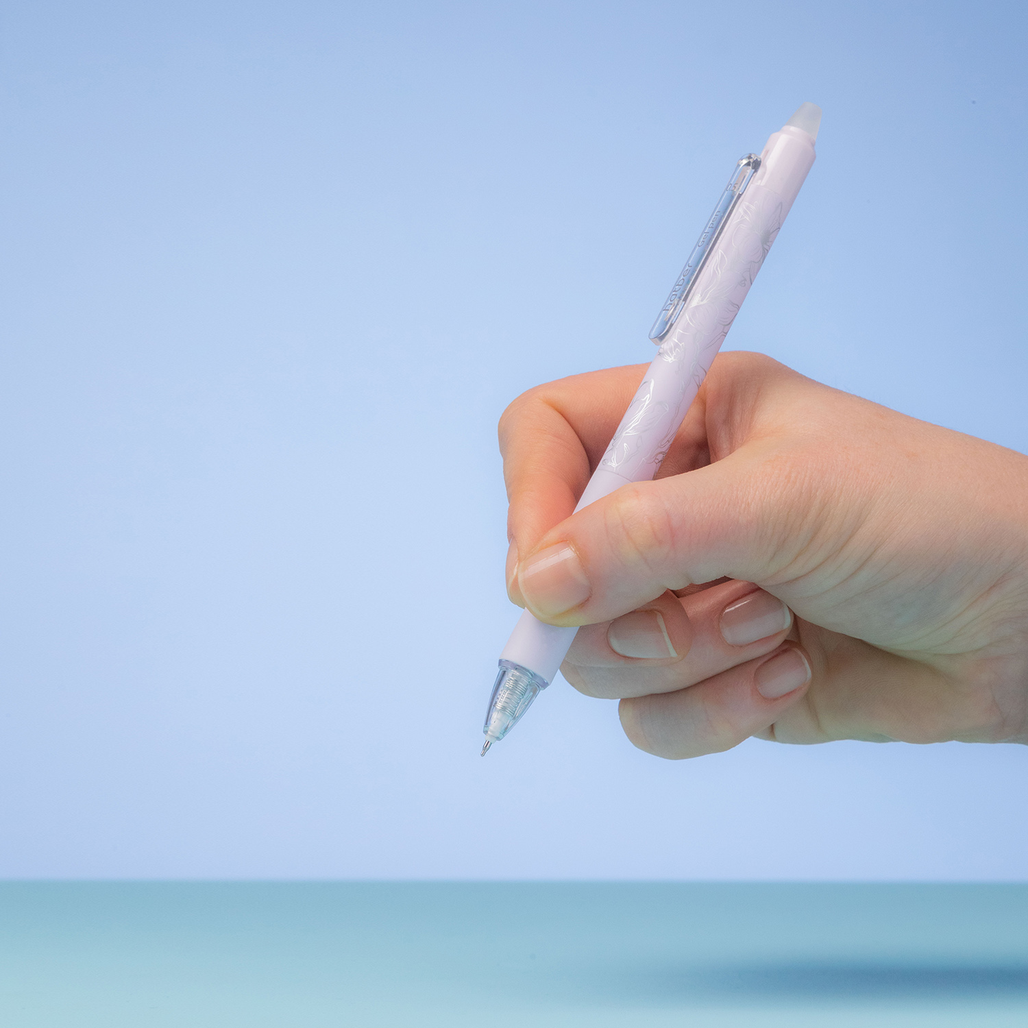 Прозрачный пластиковый клип позволяет закрепить ручку на тетради или блокноте.