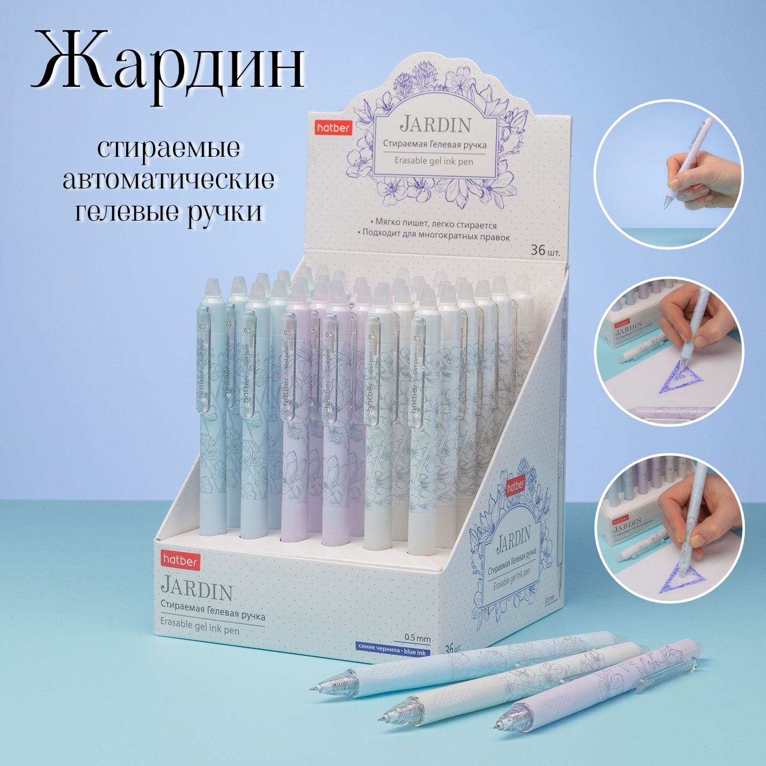 Стираемые автоматические гелевые ручки «Жардин» от Hatber - изысканная красота, созданная из самых нежных оттенков сумерек.