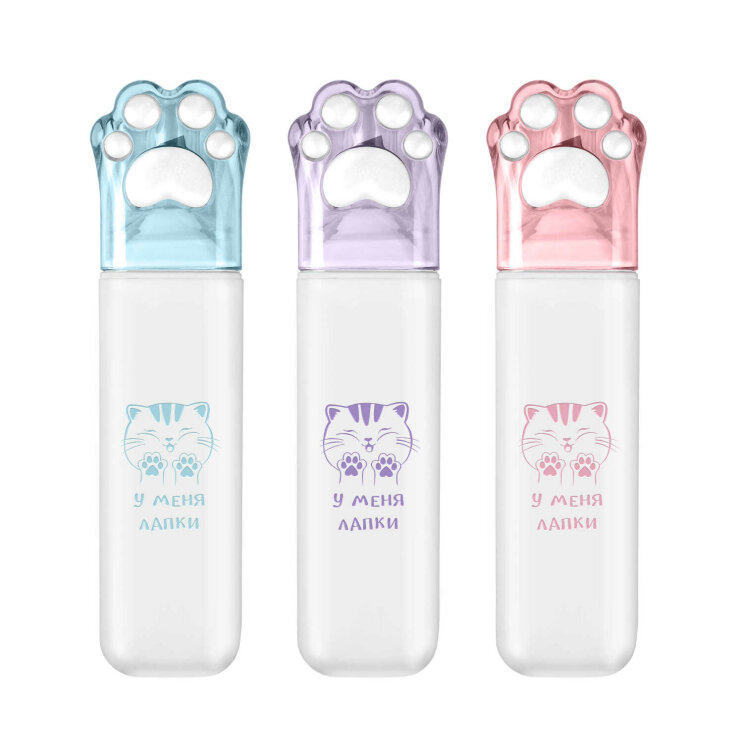 Текстовыделитель арт. 72271 / 12 ПУШИСТЫЕ ЛАПКИ (БОКС, 12 шт., цвет: голубой, розовый, сиреневый, 11x3x1,9 см, материал корпуса: полипропилен, форма наконечника: скошенная, материал наконечника: фибра (нейлон), софт-тач покрытие