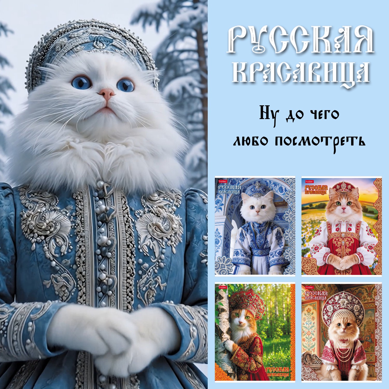 Под девизом «котики и красавицы» появились прекрасные обложки с кошками в русских народных костюмах да при русских избах, лесах и берёзках.