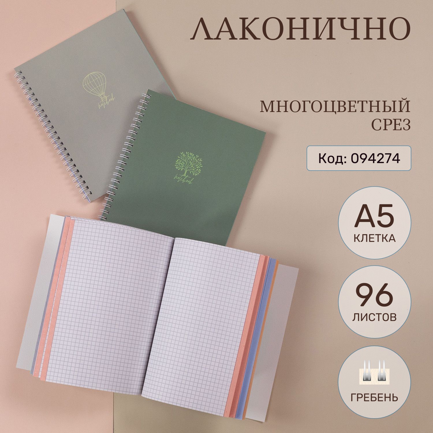 Многоцветный срез удобен для тематического разделения тетради.