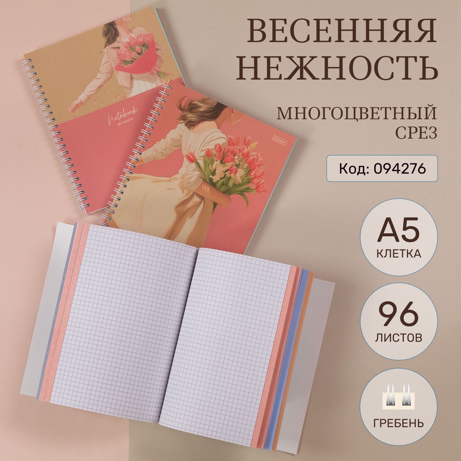 В любом магазине приятно найти большой выбор желаемого товара. Hatber предлагает небольшим уютным магазинам: тетради на гребне с многоцветным срезом по 2 дизайна в блоке.