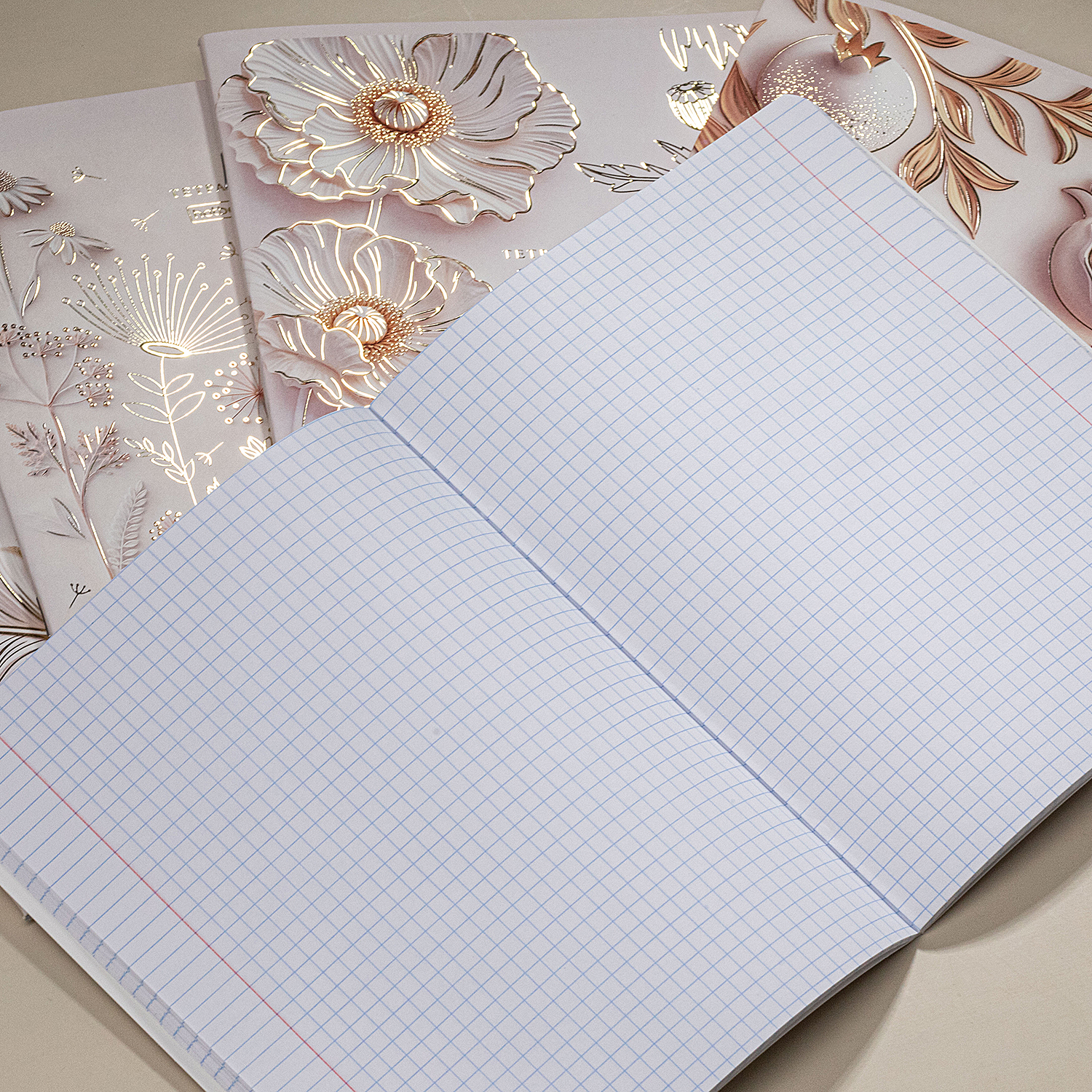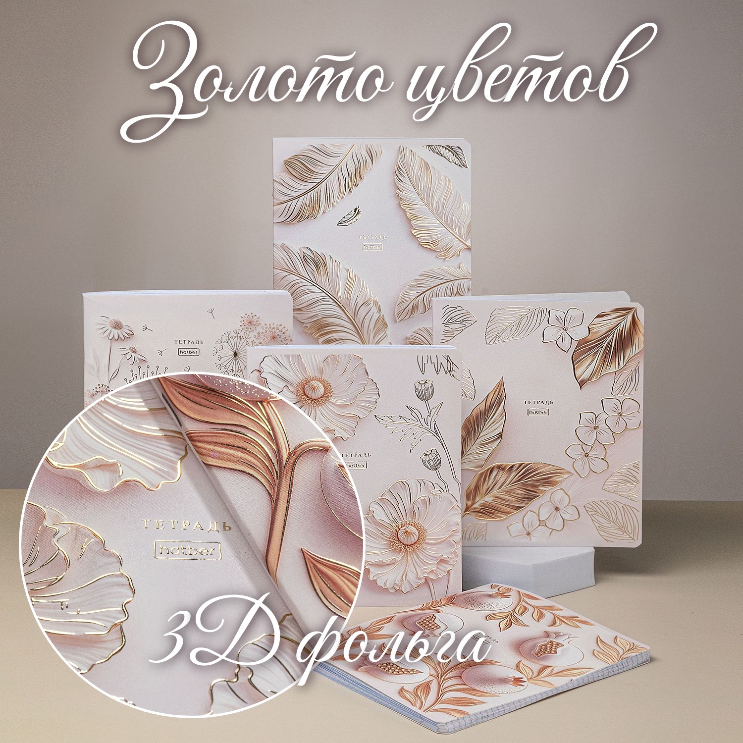 «Золото цветов» - тетради, на обложках которых сплелись чистота белого цвета и вечное благородство золота.