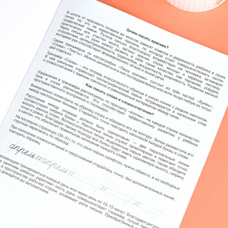 Тренажер для письма. Серия "Уроки чистописания" арт. 72153 СЛОВА /165х210 мм, 16 л., блок - офсет 100 г/м², печать в две краски, обл - мелованный картон 200 г/м², мягкий переплёт (2 скобы),