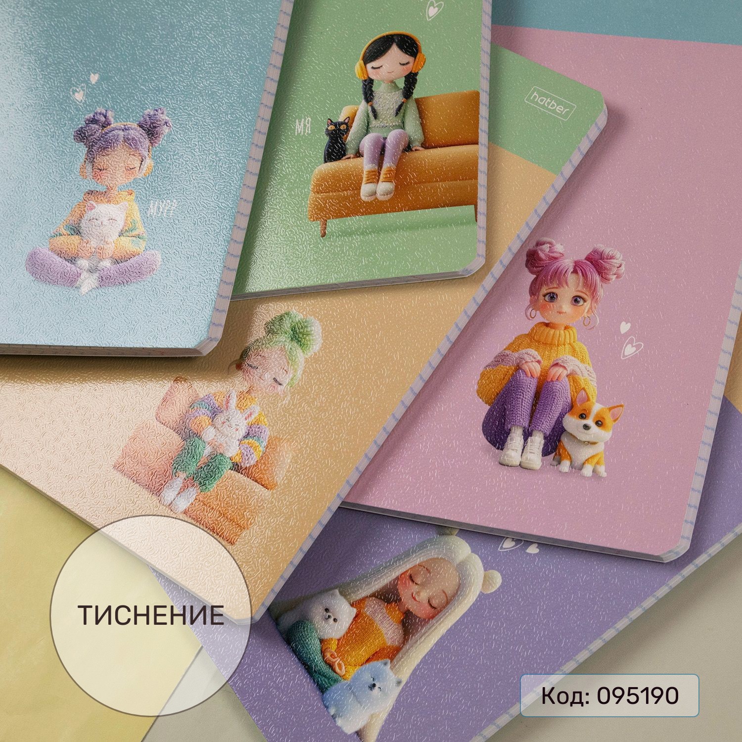 Умиротворение видно в мягких и уютных домашних образах девчонок, в пушистых питомцах, которые всегда рядом. Обложки с тиснением.