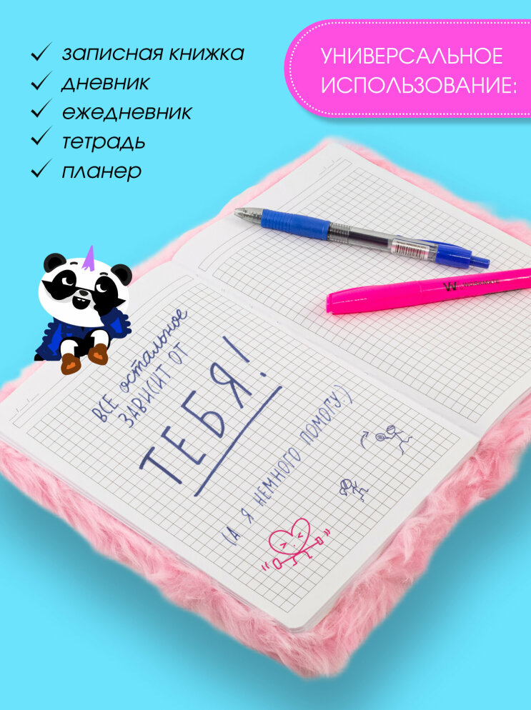 Записная книжка ПандаРог Принцесса подходит для ведения записей, заметок, планирования важных дел. Имеет оригинальную пушистую обложку. Внутренний блок включает в себя 80 листов в клетку. Плотность бумаги 80 г/м2. Подходит для письма шариковыми и гелевыми ручками, маркерами, текстовыделителями и карандашами. Бумага устойчивая к стиранию ластиком. Записная книжка ПандаРог Принцесса может использоваться в качестве дневника, ежедневника, тетради и планера.